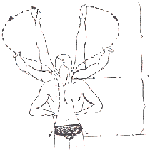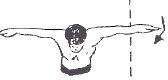 The butterfly stroke has three major parts, the pull, the push, and the recovery. These can also be further subdivided. From the initial position, the arm movement starts very similarly to the breast stroke. At the beginning the hands sink a little bit down with the palms facing outwards and slightly down at shoulder width, then the hands move out to create a Y. This is called catching the water. The pull movement follows a semicircle with the elbow higher than the hand and the hand pointing towards the body center and downward. The semicircle ends in front of the chin, with the hands close together so the swimmer can form a triangle with the fingers.