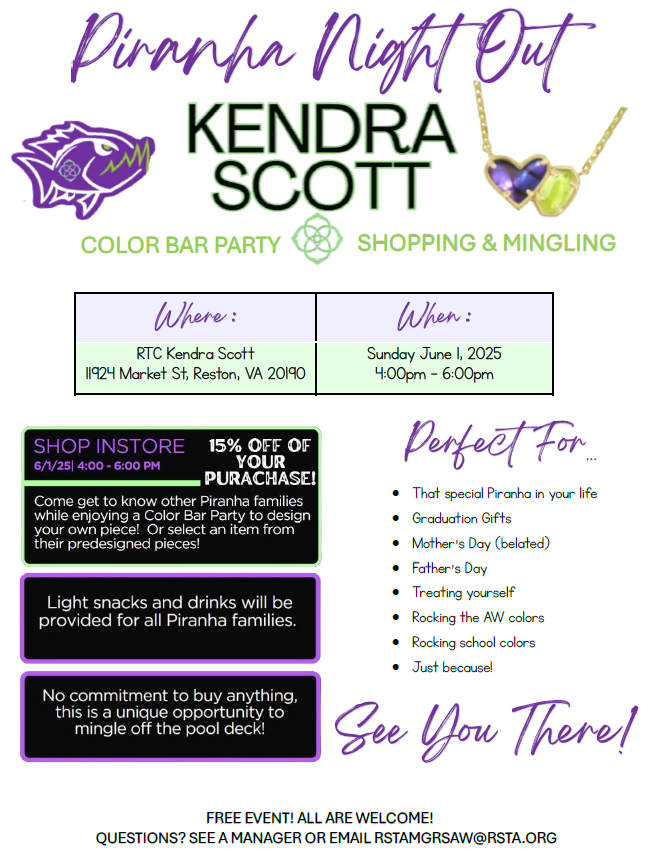 - Team Social Event "Piranha Night Out" @ Kendra Scott of Reston Town Center