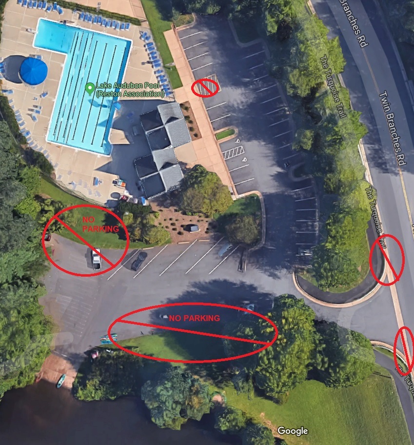 Please plan to park in the designated parking lane along Twin Branches Road when attending meets at our pool! Limited legal parking spots may also be available in the parking lot. Please be courteous to other facility users who are visitng the lake.