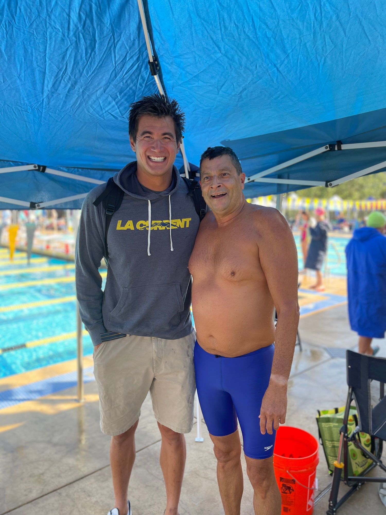 Congratulations to Nick Barajas, Mary Buford, Laura Gonzalez, and Jackson Boyle for participating in the Pacific Masters Long Course Championship in Novato at Marin College on July 21-23 2023. SACMA placed 10th out of 36 small teams! All four swimmers swam exceptionally well. Big shout out for second place finish in Mixed Medley Relay and first place finish in the mixed free relay! Great job! Bonus pic is of me and Olympic swimmer, Nathan Adrian. Looking forward to participating again next year.