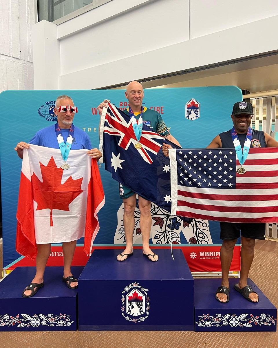 This year in Winnipeg, I won the Gold in the 100M Fly, Silver in the 50M Fly, and the Bronze in the 100M Breast, 50M Breast, and 200M IM. I also won 3 Gold and 1 Silver in 4 relays, 200M Medley and 200M Free, in both Men's and Mixed teams.