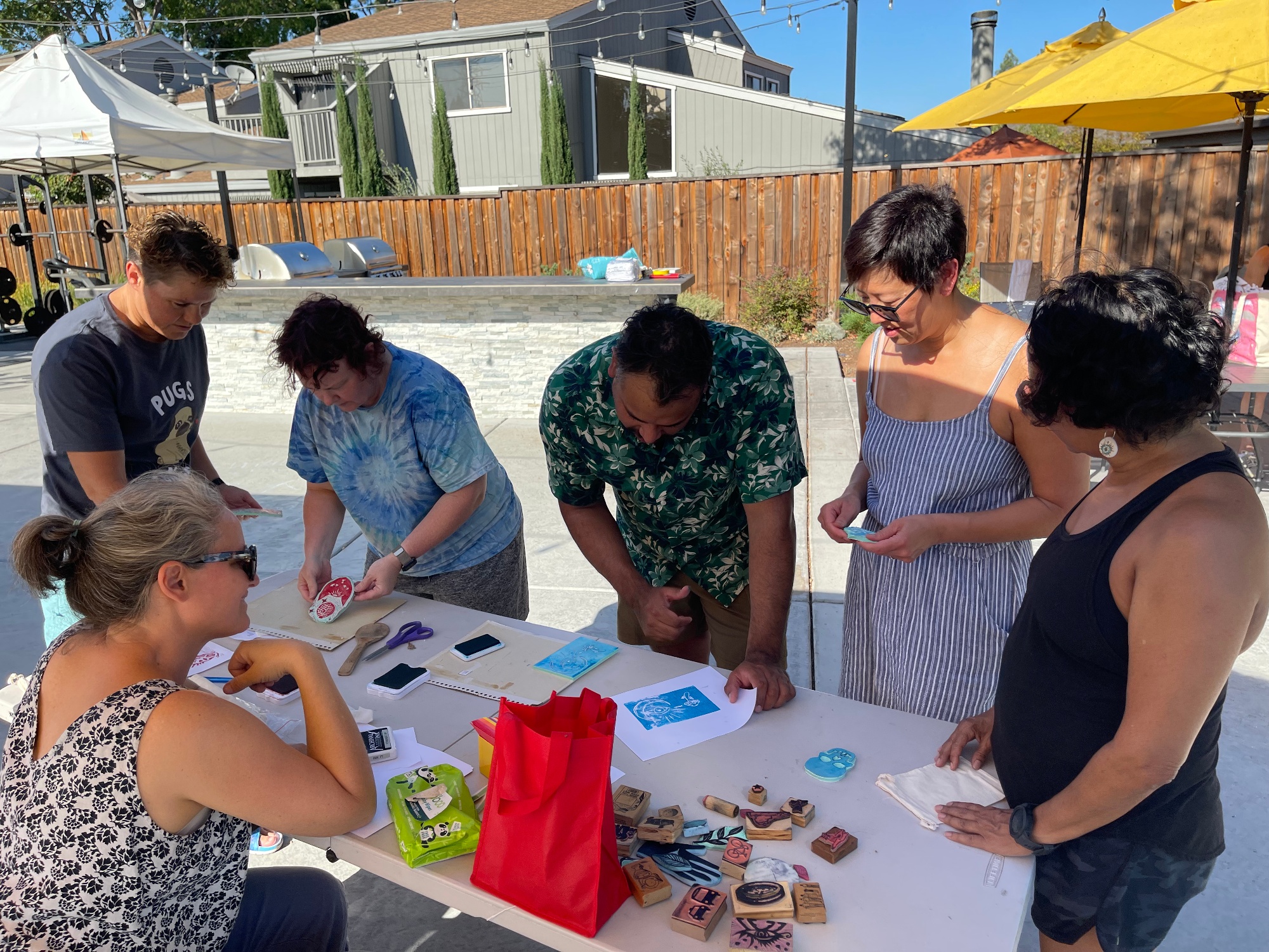 We made our own stamps in Heather Hogan's Block Printing Workshop. I loved all the prints. So fun! This picture is Stephanie's block.