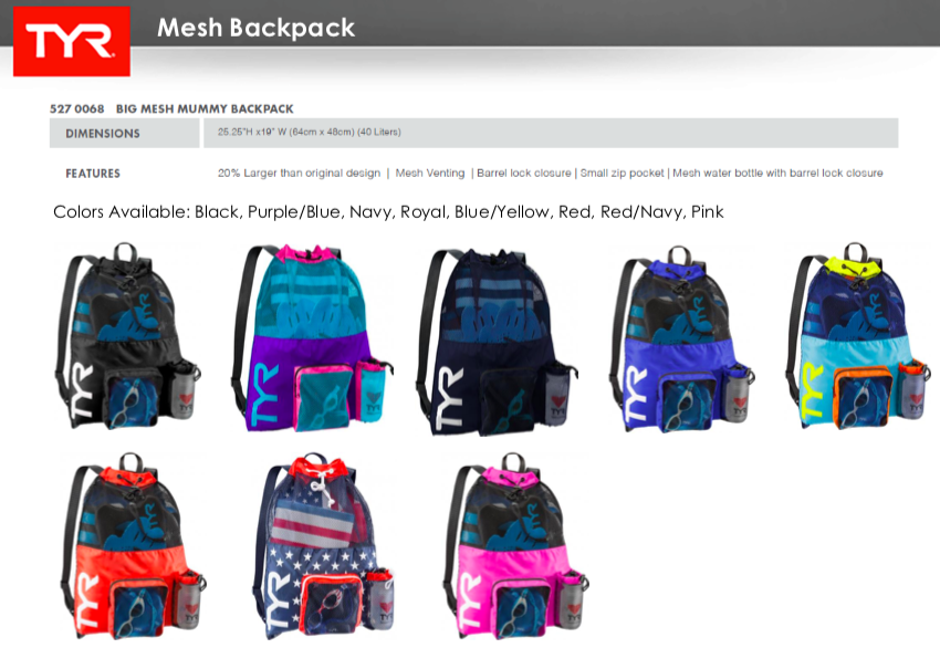 Swimmers are required to have the appropriate equipment for purposes of training, all named with a permanent marker: