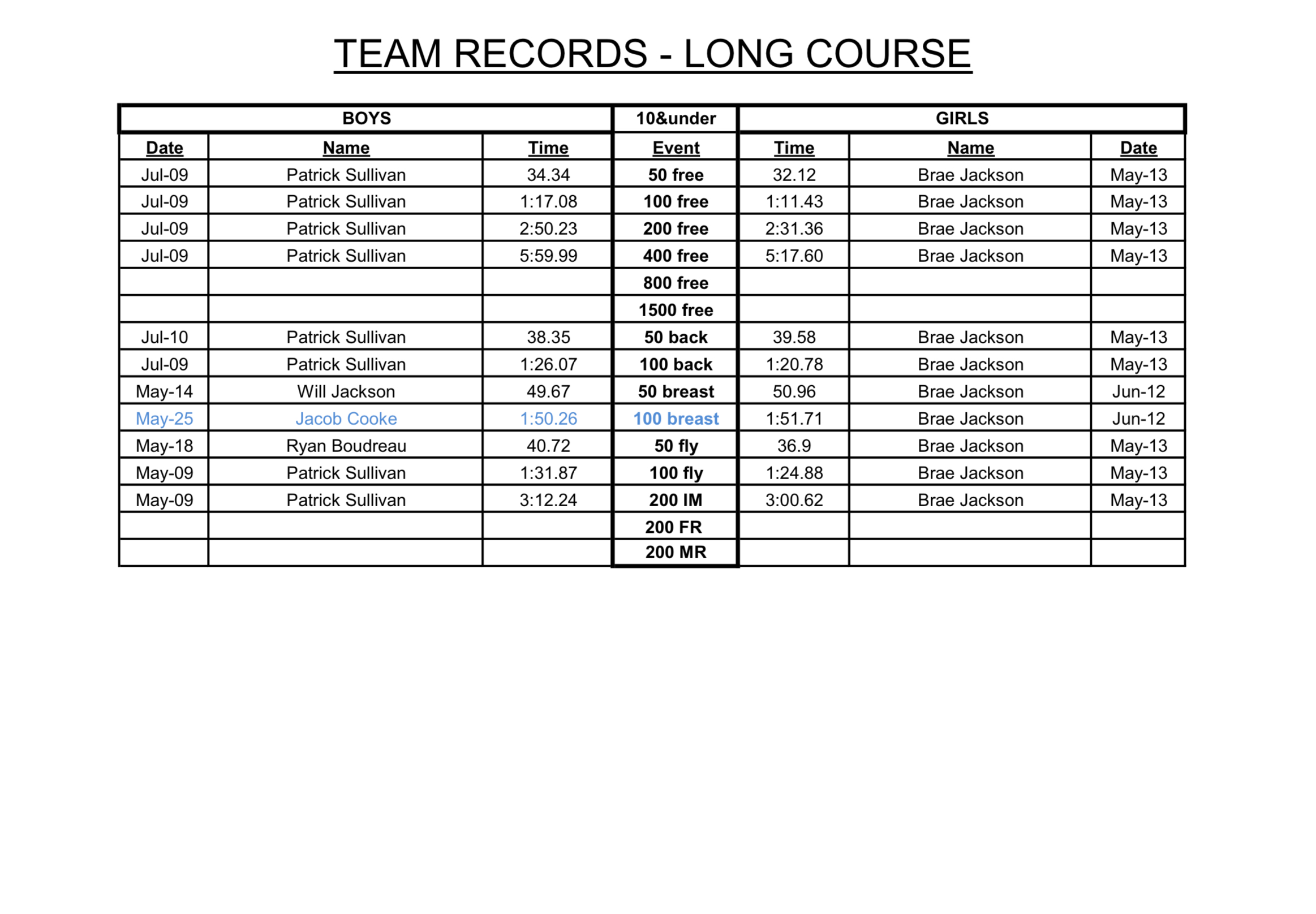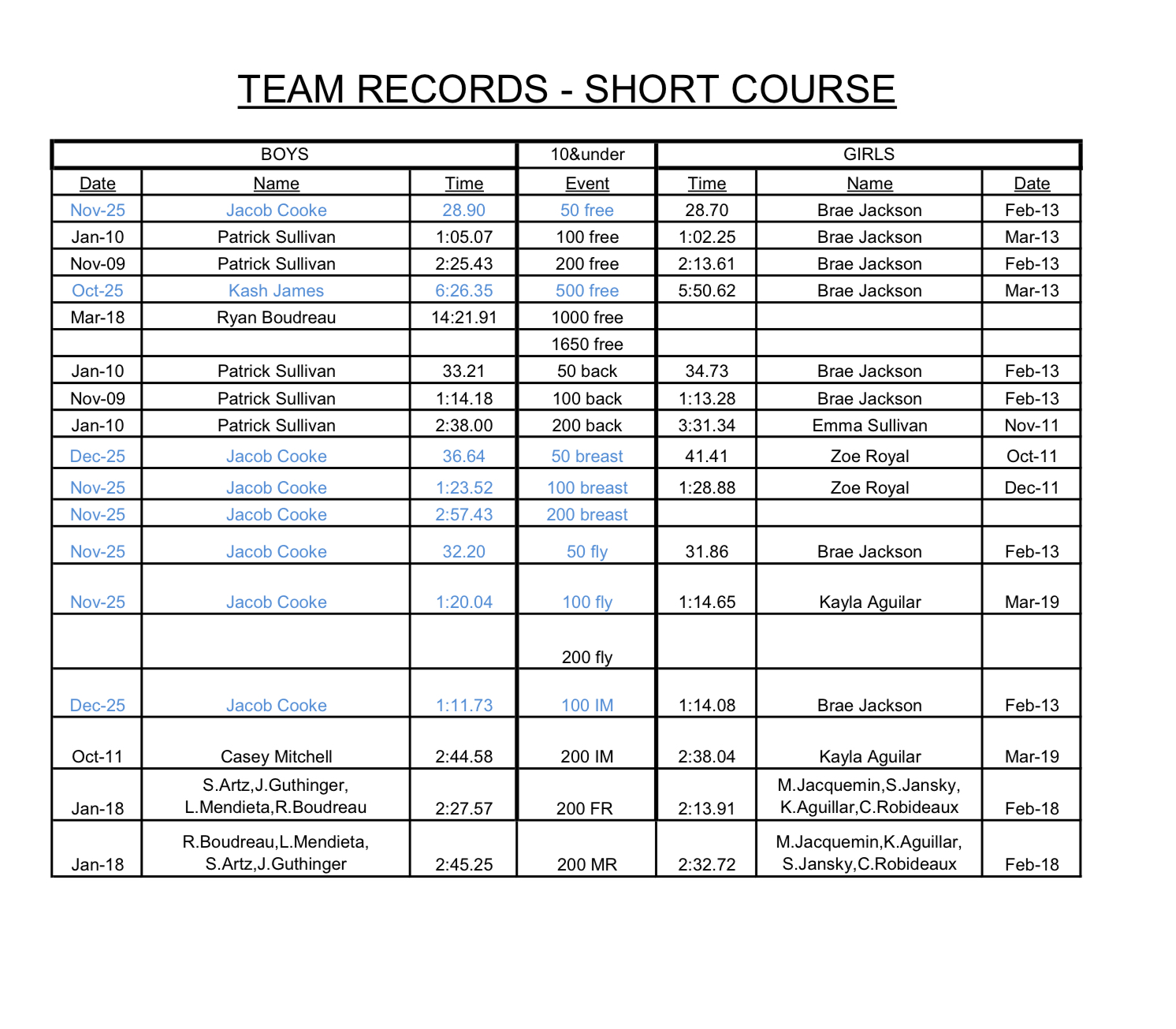Short Course Yards: 10&Under Long Course Meters: 10&Under