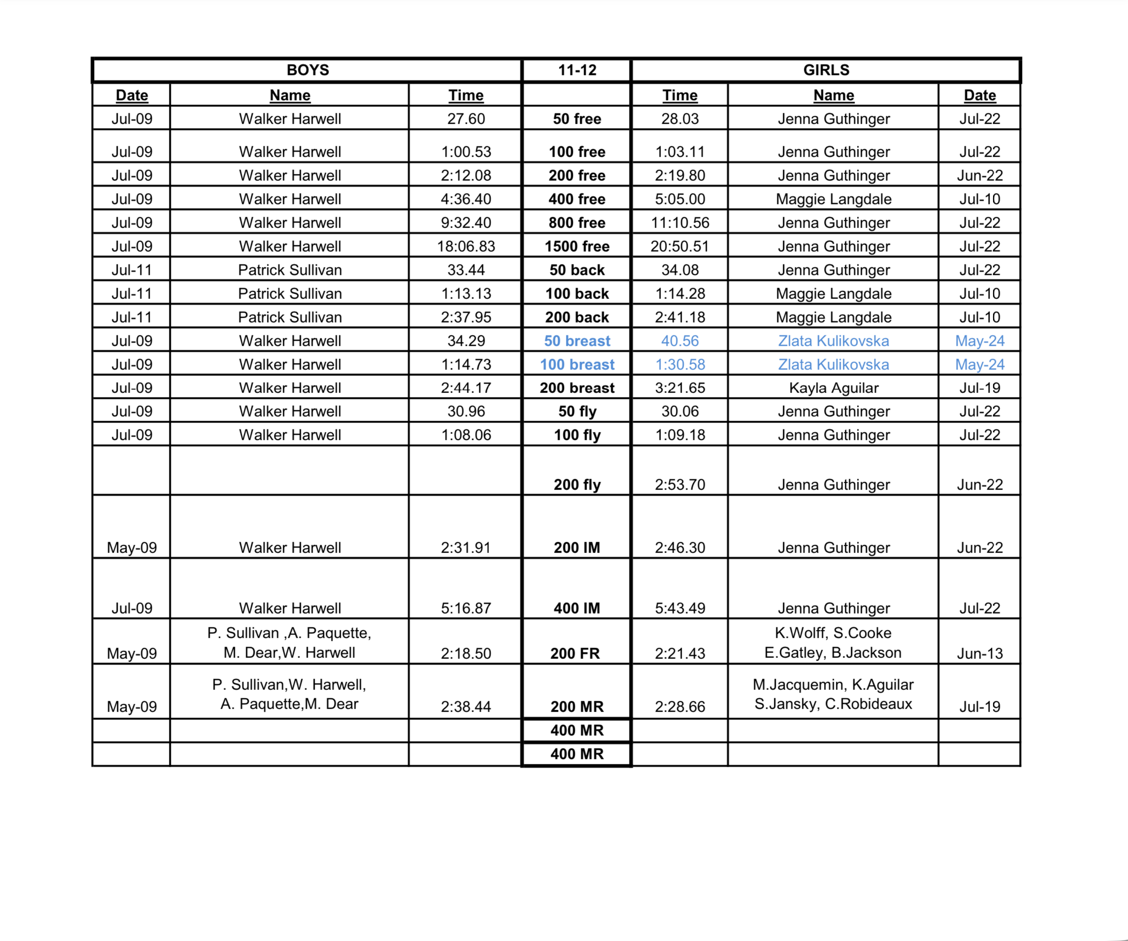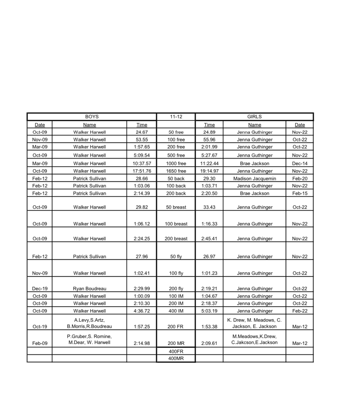 Short Course Yards: 11-12 Long Course Meters: 11-12