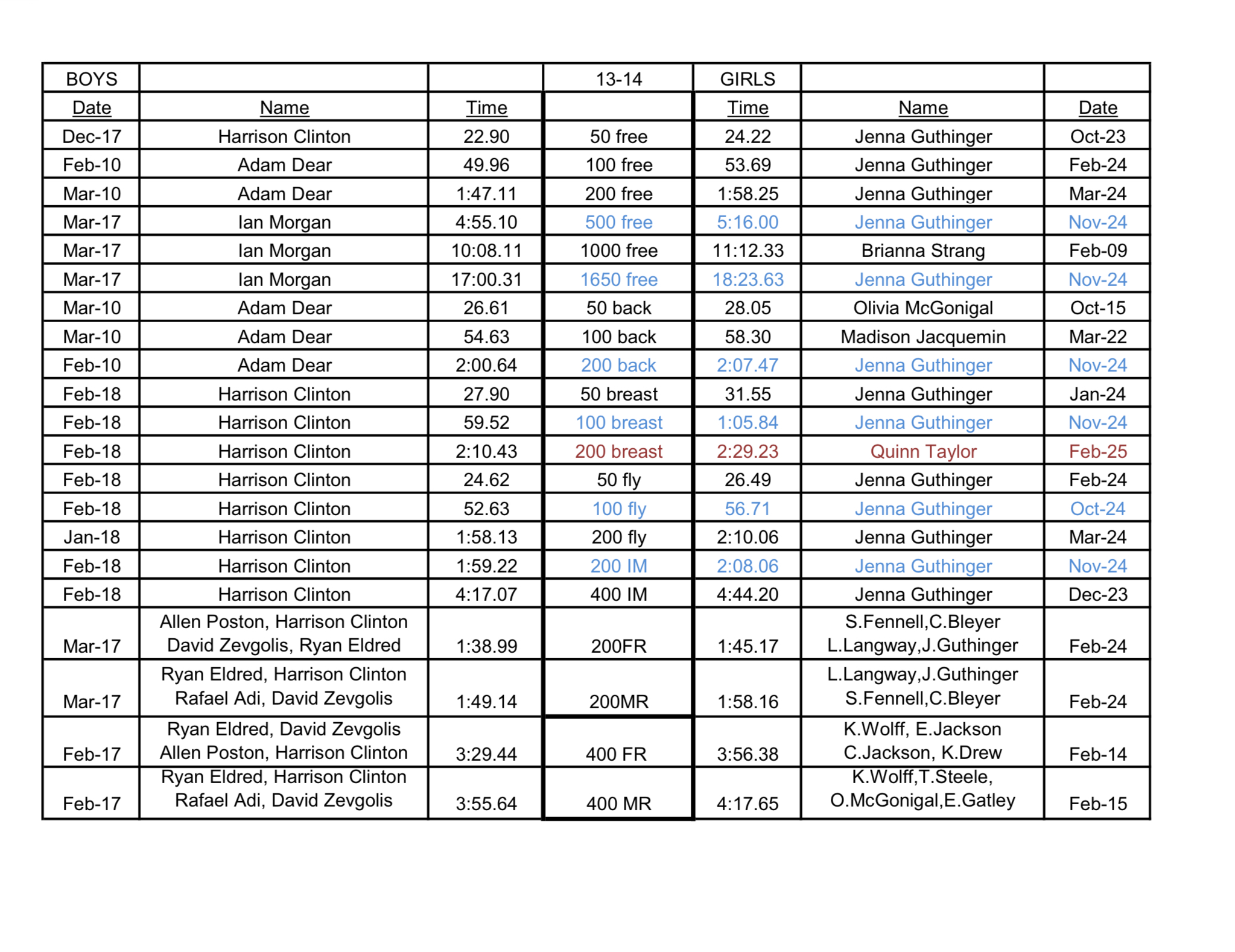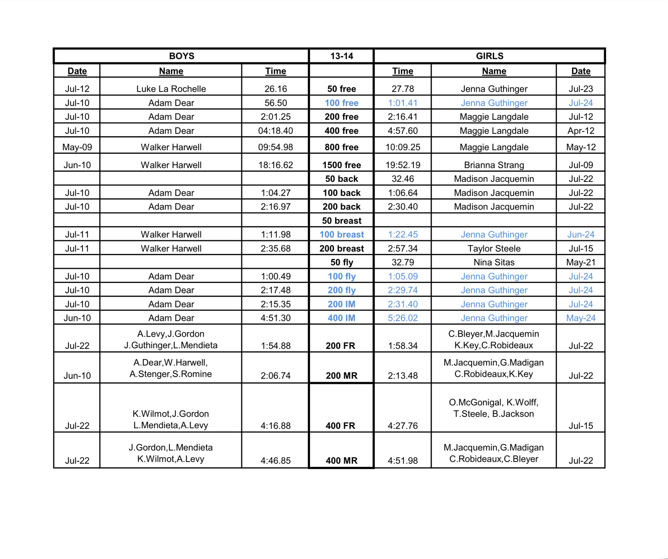 Short Course Yards: 13-14 Long Course Meters: 13-14