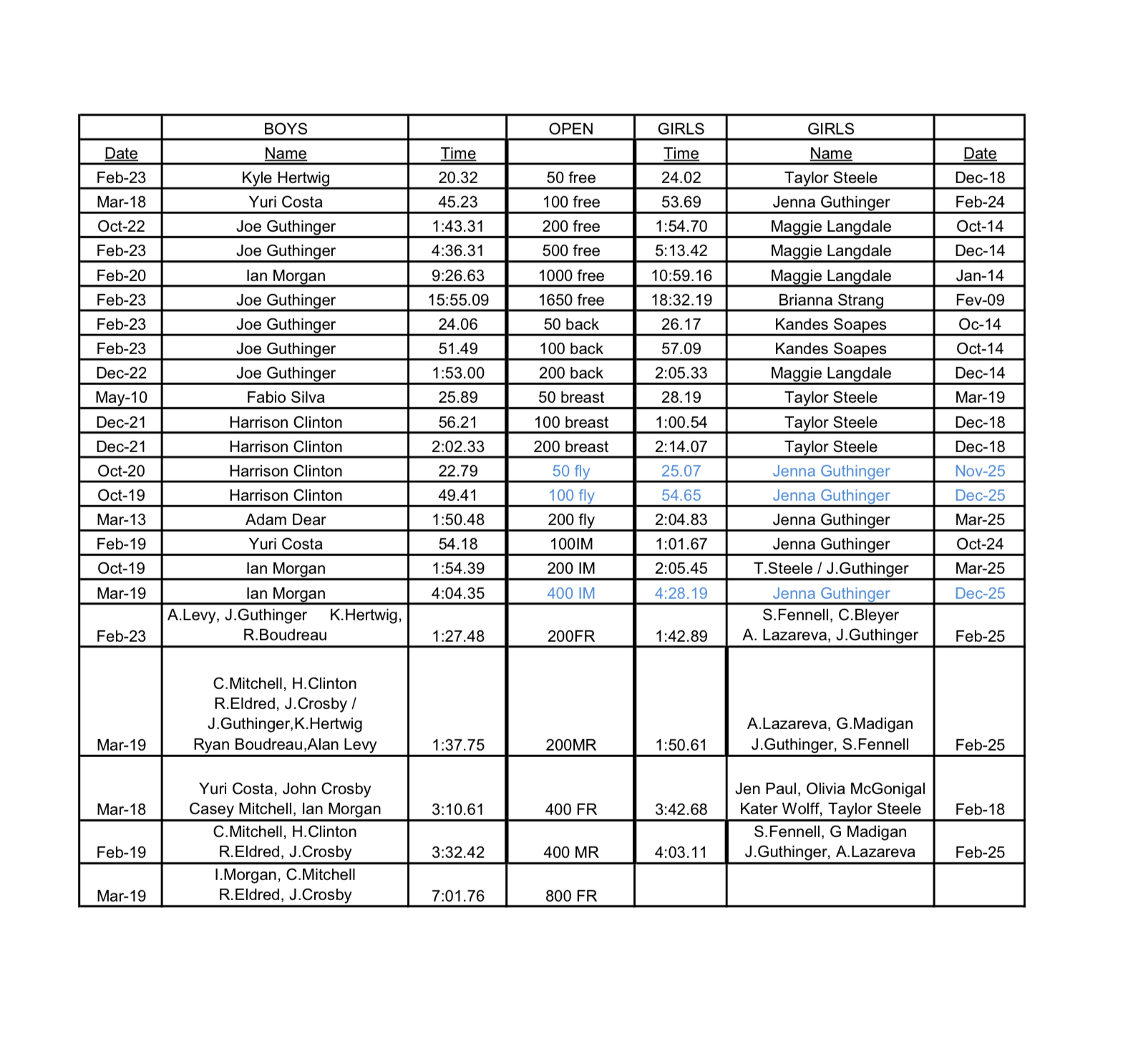 Short Course Yards: Open Long Course Meters: Open