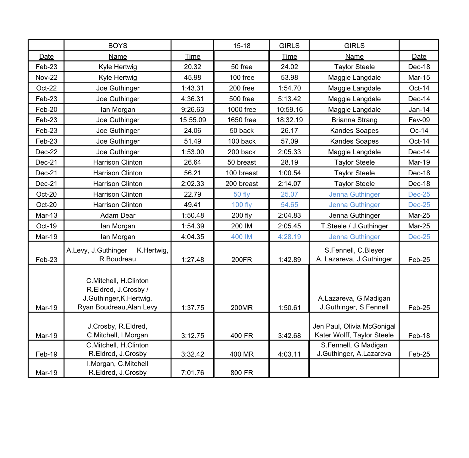 Short Course Yards: 15-18 Long Course Meters: 15-18