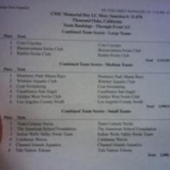 Our Coto Coyotes have done it again with a first place finish at the Memorial Day Invitational in Thousand Oaks. The 12 and under Coyotes set the stage on Sunday for an all out showdown by giving the older Coyotes a 300 point lead. With several spectacular swims the 13 and up Coyotes dug down deep holding off Buenaventura for the win even though they had significantly more swimmers. Final score: