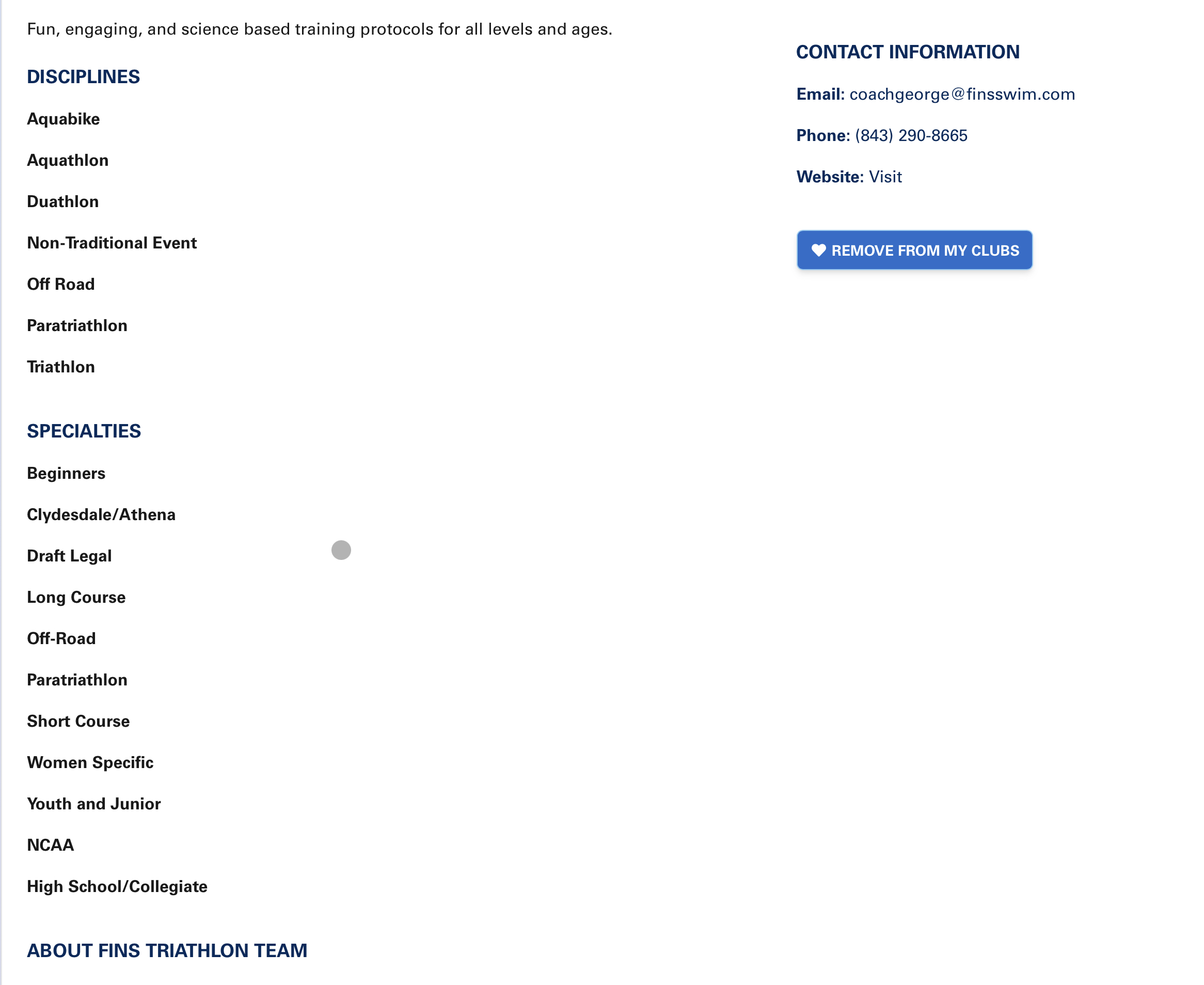 You can also find us on USATriathlon.org by searching for "FINS Triathlon Team."