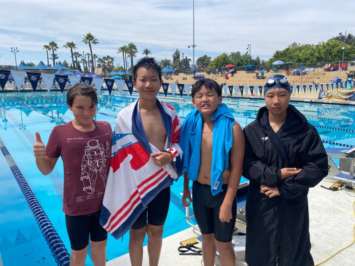 - First-Ever 11-12 Boys Relay: Our first-ever 11-12 boys relay team, comprised of Dyllan Tran, Elijah Noji, Kurt Gartland, Ray Zhang, and Zander Kwan, swam the 200 Free Relay (2:05.85), 200 Medley Relay (2:22.69) securing an impressive 11th place and 14th place respectively.