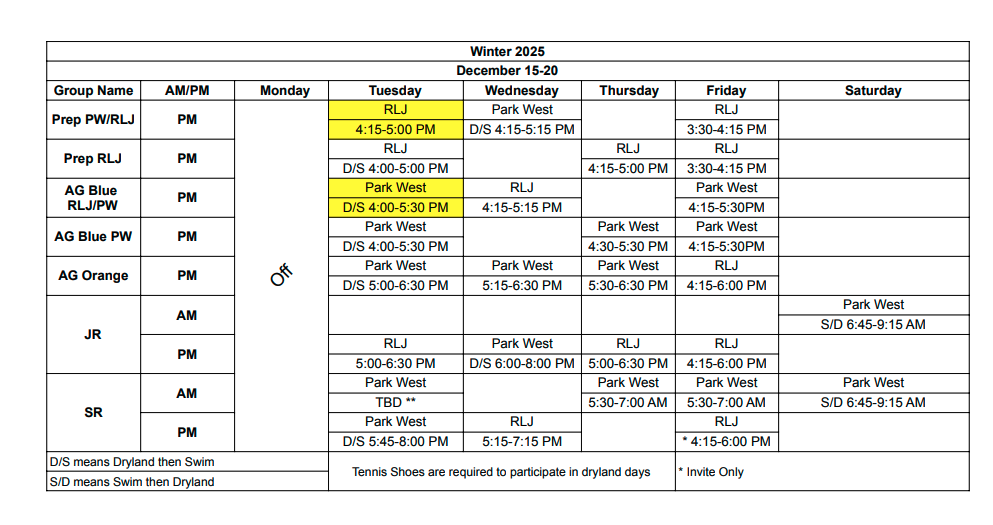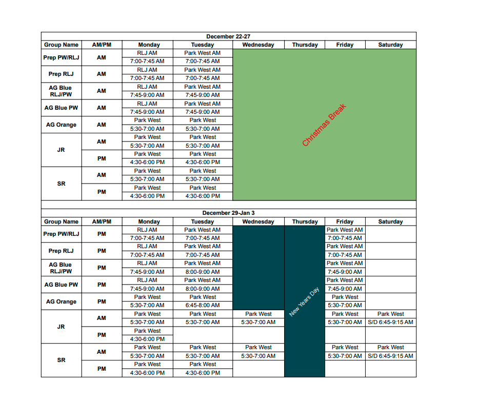Practice Schedules