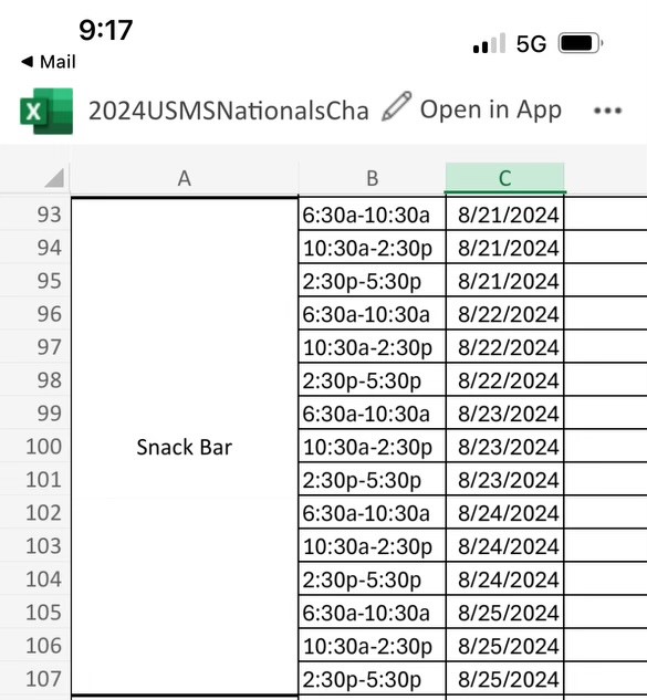 Snack Bar and Registration Session Leaders Needed for Masters Nationals Meet!
