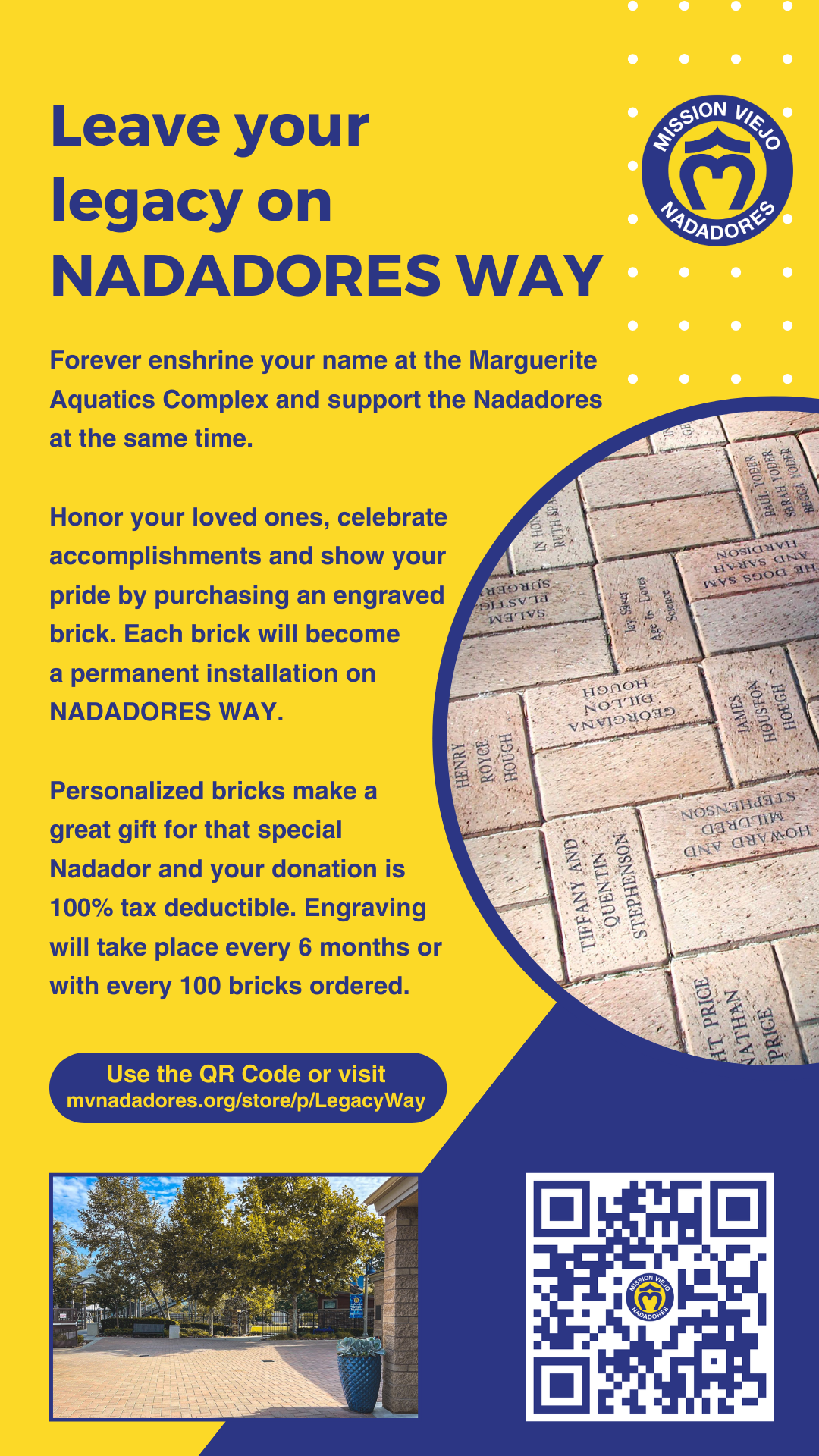 Purchasing a brick is a special way to honor loved ones, celebrate accomplishments, and show your Nadadores pride.