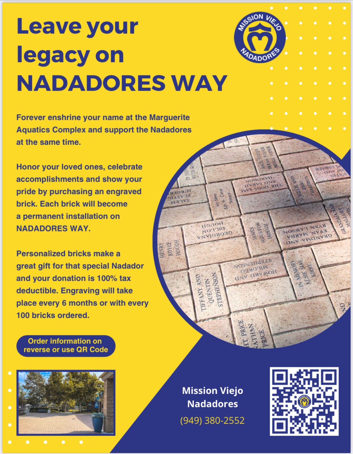 Purchasing a brick is a special way to honor loved ones, celebrate accomplishments, and show your Nadadores pride.