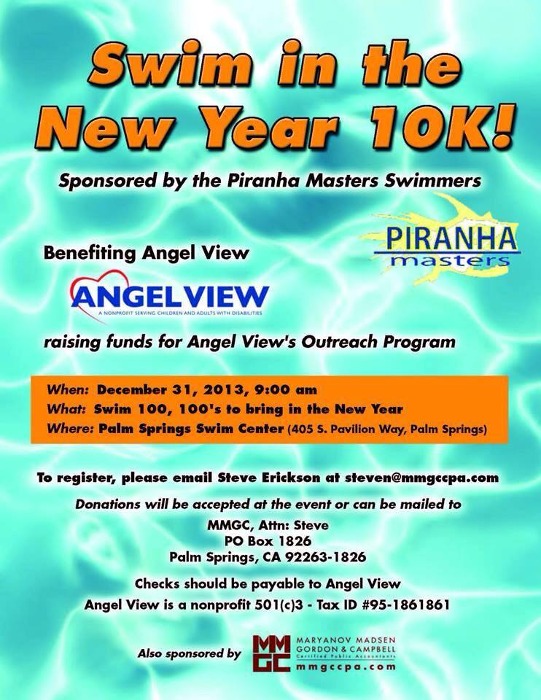 Proud to announce that the Piranha Masters New Years Eve 100x100 swim challenge raised over $3000, all going towards the Angel View Outreach program to help local Coachella Valley kids with disabilities. More info on their programming here: https://www.angelview.org/outreach