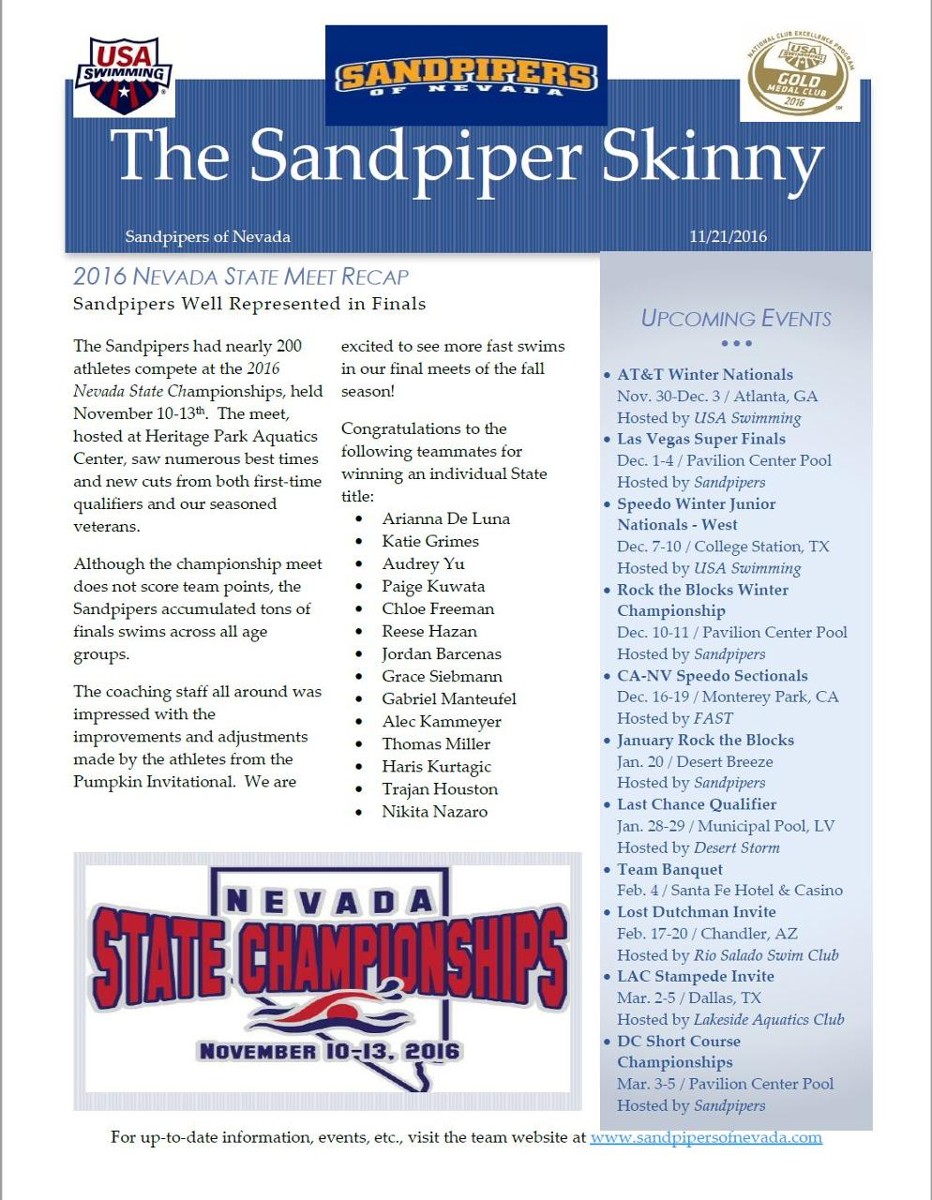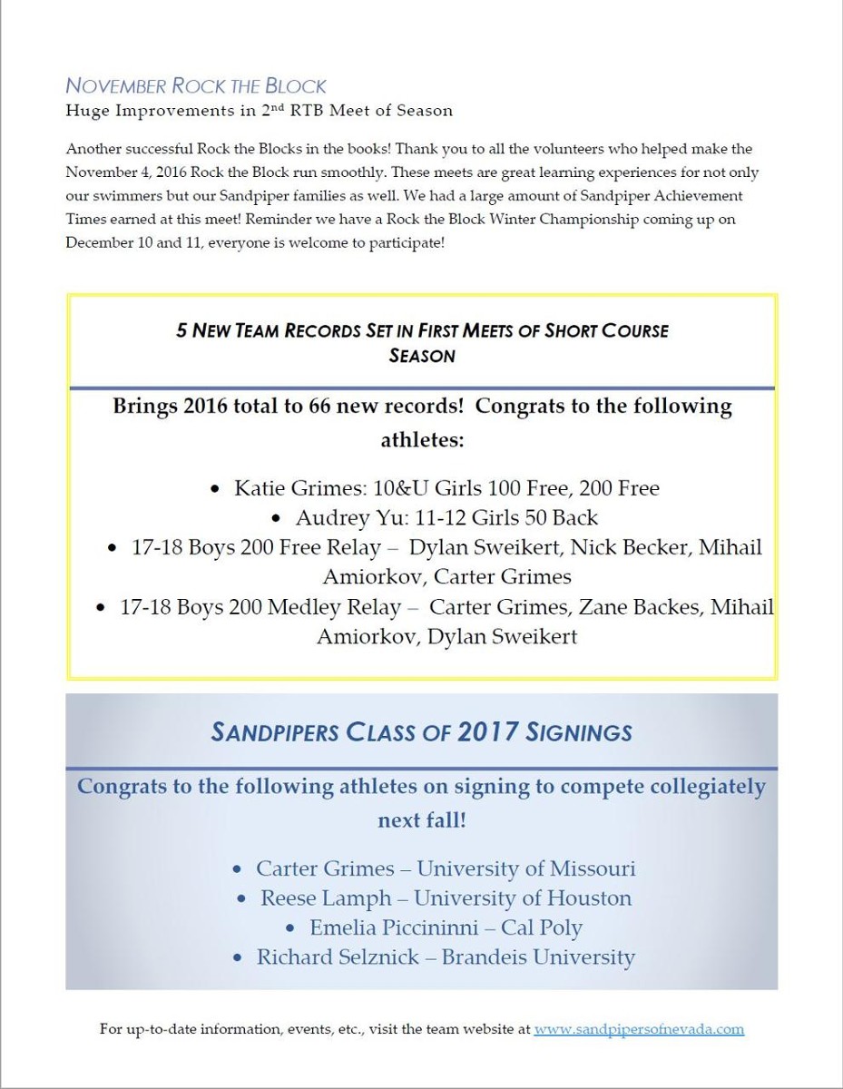 Please read through the newsletter and share it with your family and athletes. Look for the next update following our December Meets.