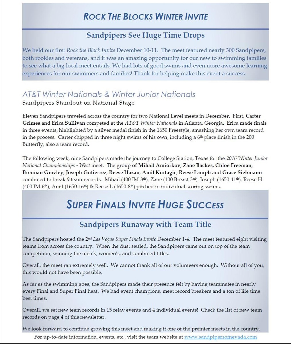 This Edition is packed with results, accomplishments and other information. Please read through the newsletter and share it with your family and athletes.