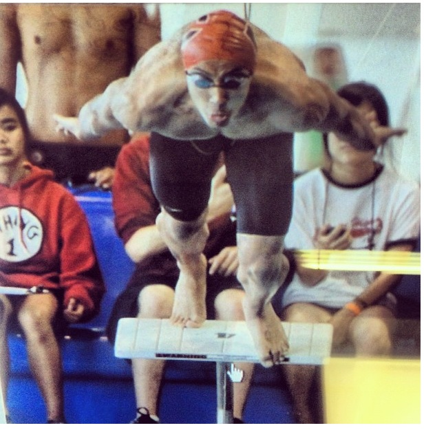 Yoessef Tibazi ('13) races off the blocks toward his 100-yard butterfly title at the 2012 CIF City Championships.
