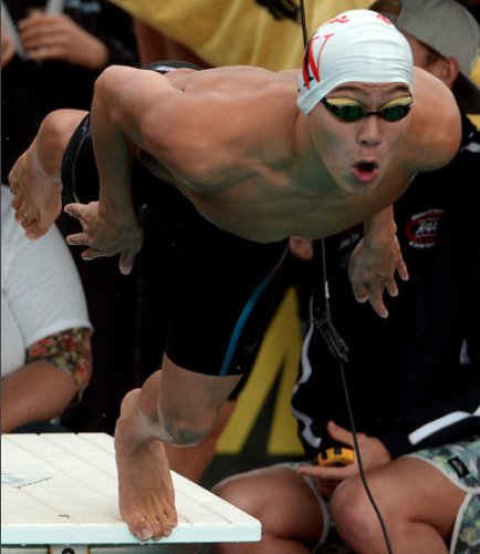 John Chu races off the blocks in his State Qualifying swim in the 100-yard Freestyle at CIF Div 1 Finals.