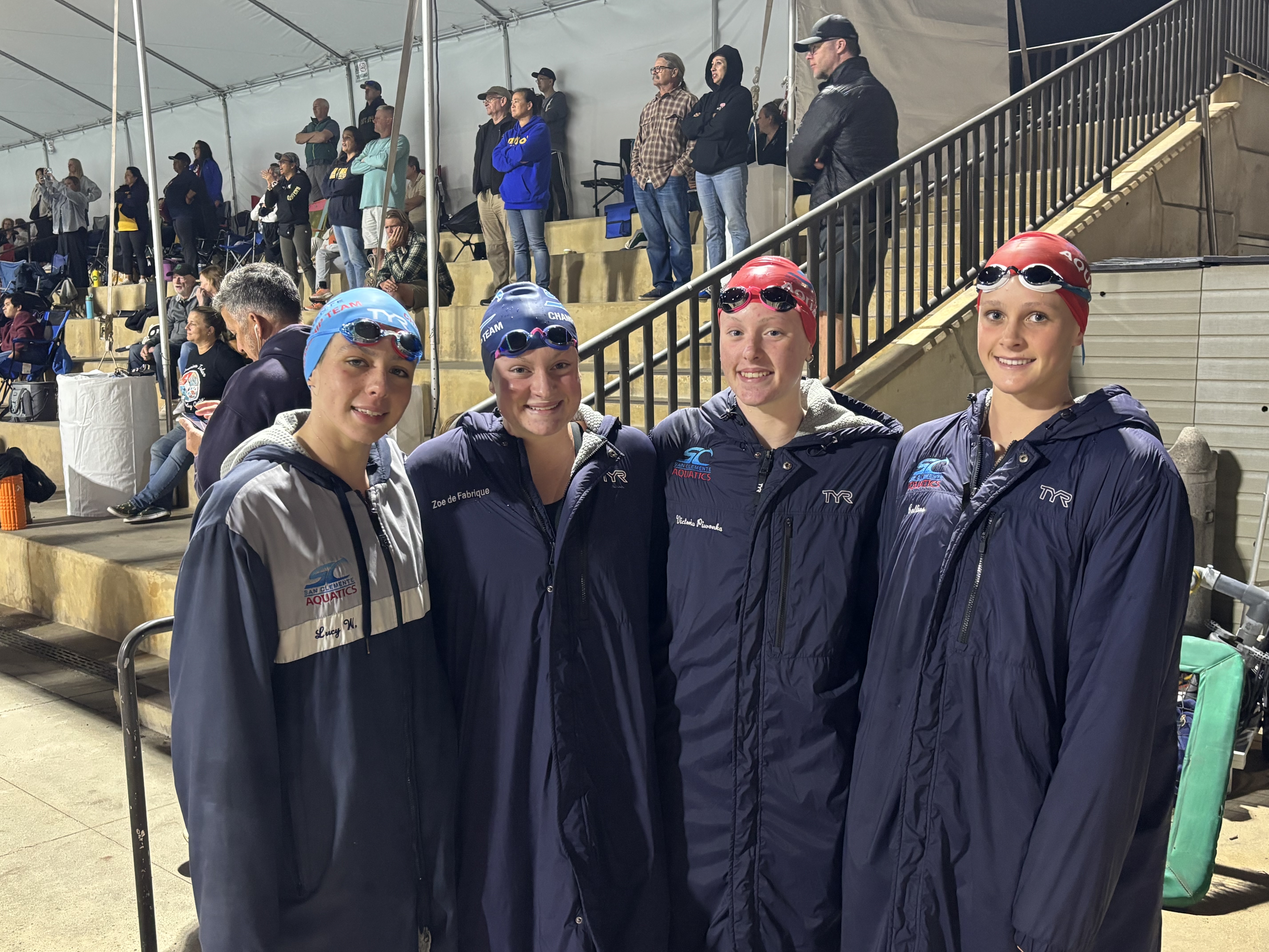 The highlight came in the 400 Yard Medley Relay, where the girls' quartet of Wren Collins (backstroke), Victoria Piwonka (breaststroke), Macie Weingarten (butterfly), and Zoe Defabrique (freestyle) blasted to 12th place and broke the SCAT 17-18 and Open team records with a time of 3:55.47.
