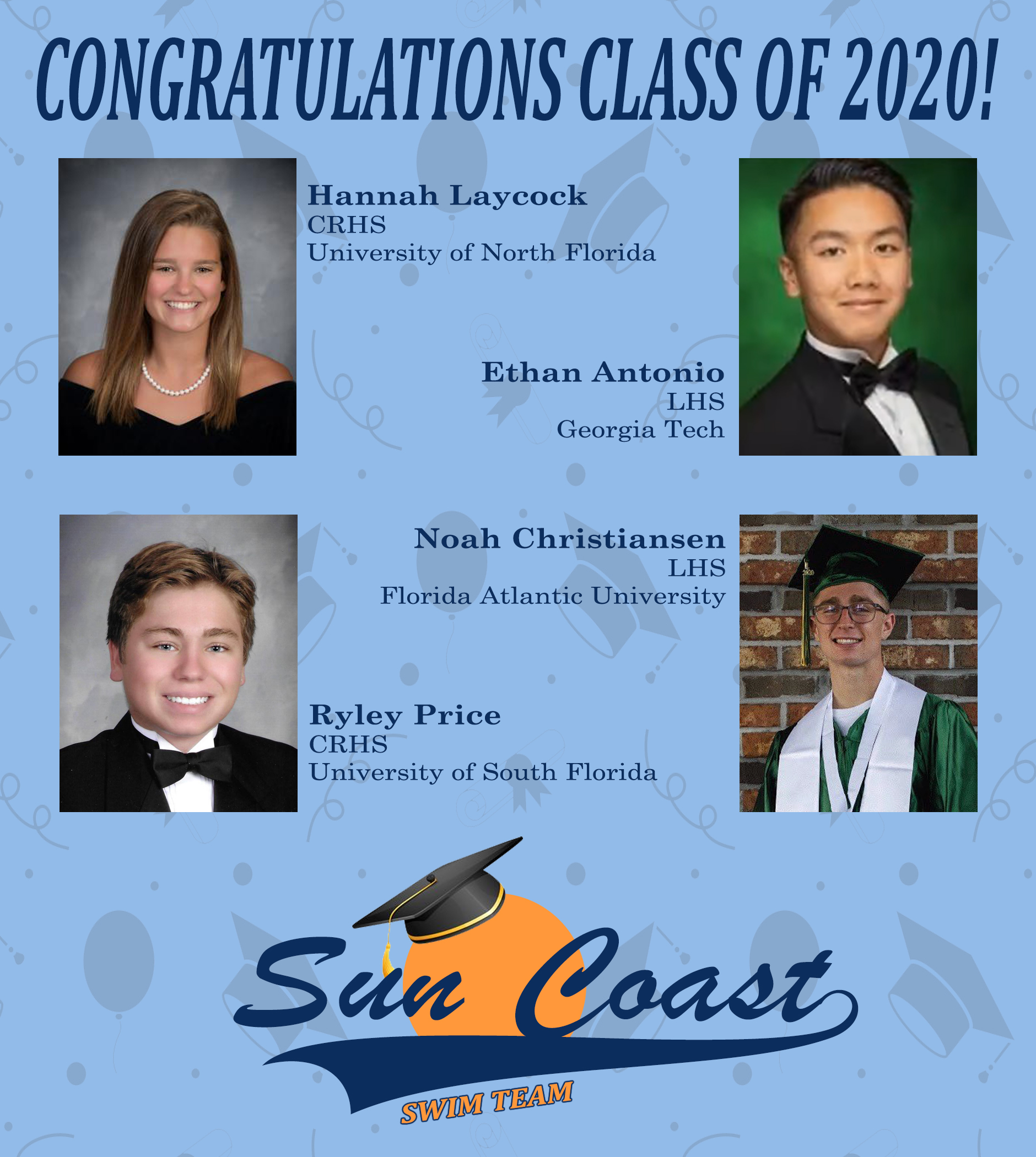 Congratulations to our Sun Coast swimmers graduating in the Class of 2020!