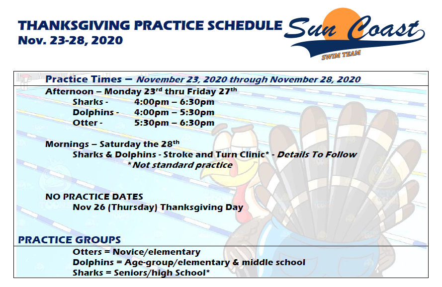 2020 Thanksgiving Practice Schedule