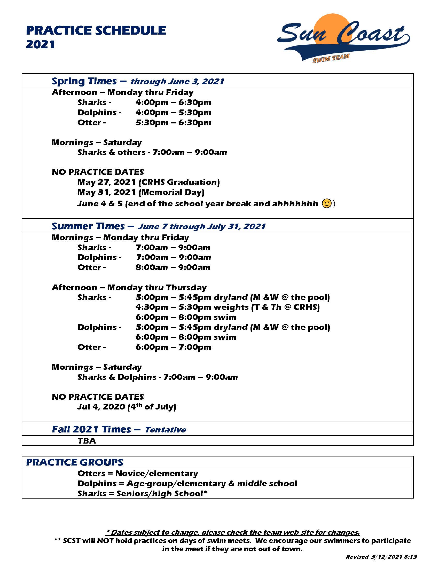 Download a PDF verison at https://www.teamunify.com/scst/__doc__/491164_2_SCST%202020-2021%20Practice%20Schedule%20v04-25-2021%20v2.pdf