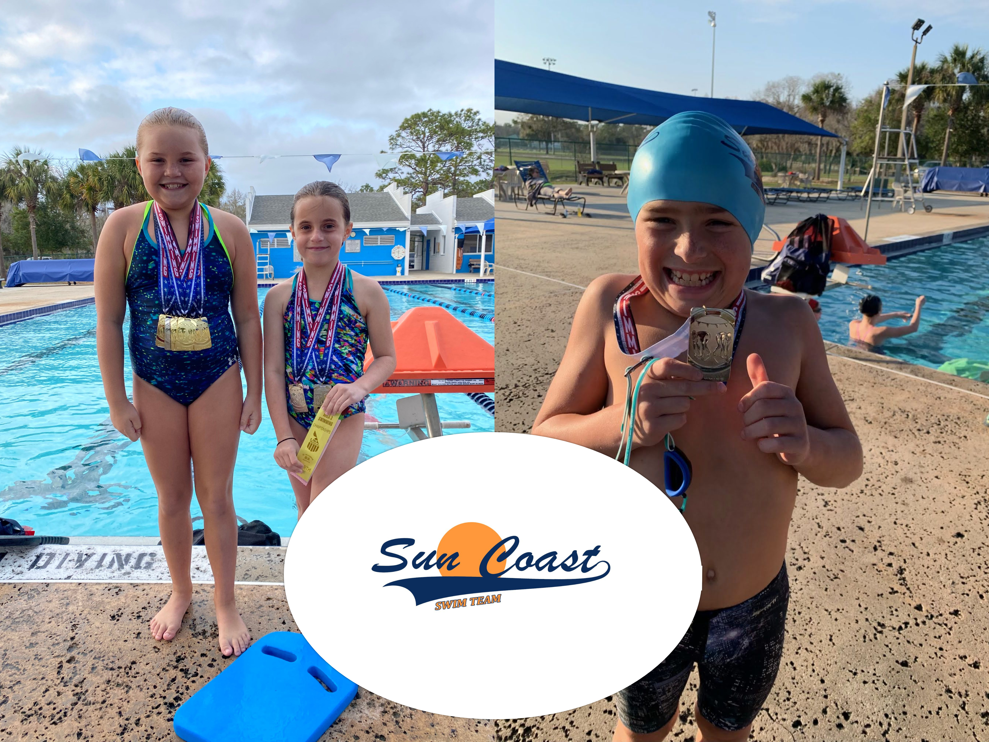 Sun Coast Swim Team this past weekend competed at the 2022 Spring Florida Swimming Area 3 Championships at the North Shore Aquatics Center in St. Petersburg. 20 Sun Coast swimmers swam in 95 different events and 75% of those swims were new personal best times.