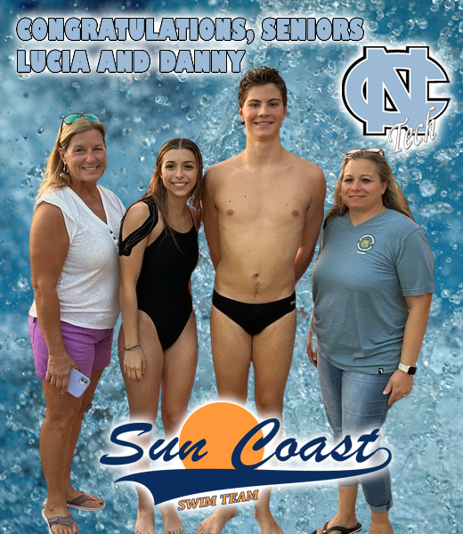 Congratulations to Lucia Mejia and Daniel Pontrelli, senior swimmers from the Sun Coast Swim Team, representing Nature Coast Technical High School! This evening marked a special occasion as they celebrated their Senior Night. Their dedication and hard work in the pool have not only earned them recognition but also the admiration of their teammates and coaches. SCST Head Coach Michelle Dickemann and SCST Vice President and Board of Director, Nikki Rieck, along with fellow SCST swimmers, traveled to Hernando County to honor Lucia and Danny on this significant milestone. Your commitment to excellence is an inspiration, and we are incredibly proud of you both, Lucia and Danny!