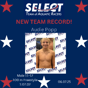 Congratulations, Audie, for setting a new Select Team record in 100m Freestyle during the 2025 long course season!