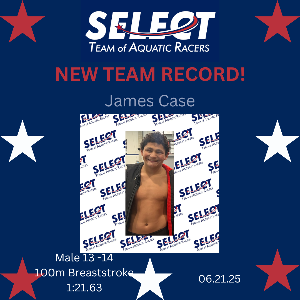 Congratulations, James, for setting a new Select Team record in 100m Breaststroke during the 2025 long course season!