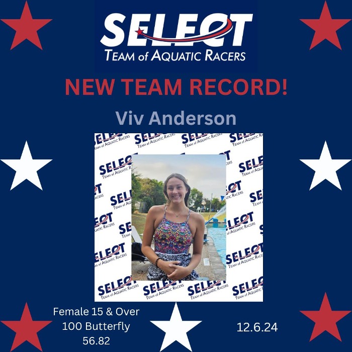 Congratulations, Viv, for setting a new team record in the Female 15 & O 100 Butterfly!
