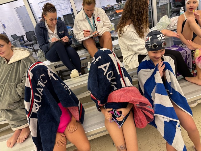We also had new records this weekend! Audie Popp achieved one new meet record. Mallory Bentley and Emma Win both set new team records.