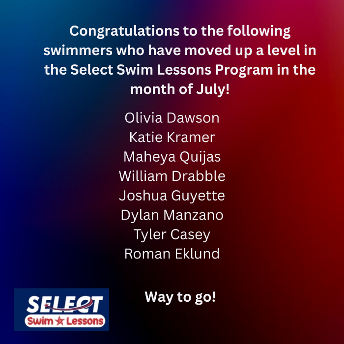 Congratulations to the following swimmers for all of their hard work in the month of July!