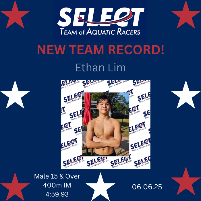 Congratulations, Ethan, for setting a new Select Team record in 400m Individual Medley during the 2025 long course season!