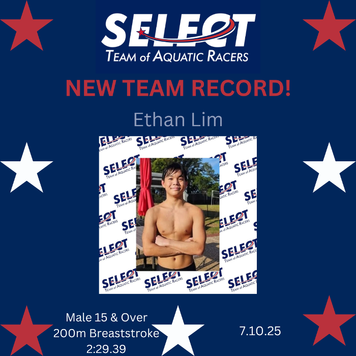 Congratulations, Ethan, for setting a new Select Team record in 200m Breaststroke during the 2025 long course season!