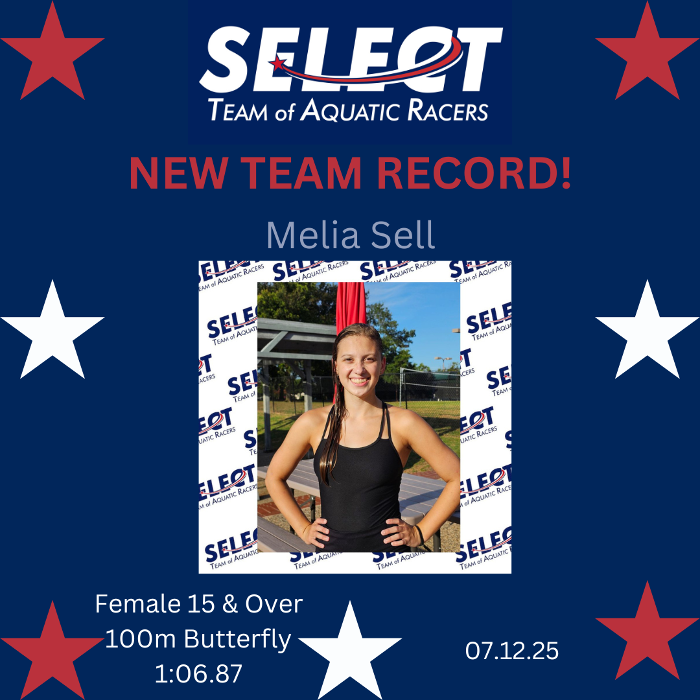 Congratulations, Melia, for setting a new Select Team record in 100m Butterfly during the 2025 long course season!