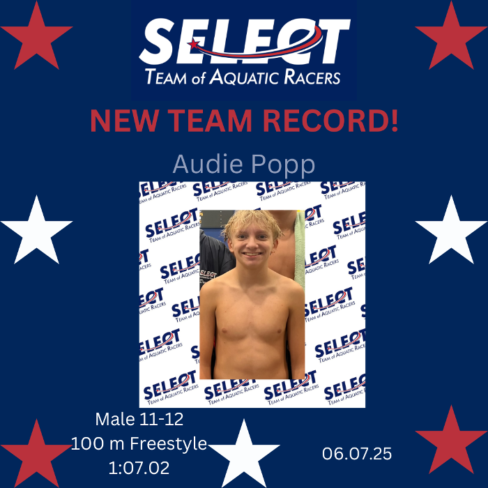 Congratulations, Audie, for setting a new Select Team record in 100m Freestyle during the 2025 long course season!
