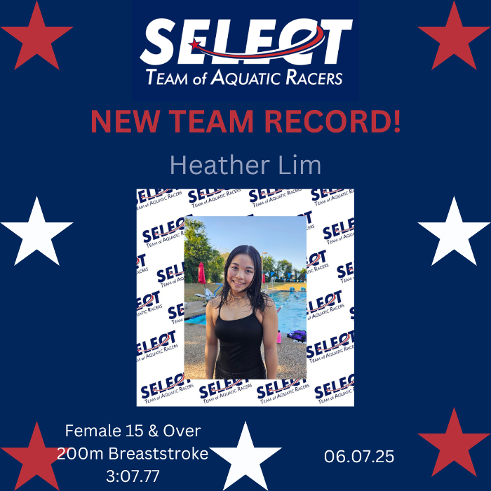 Congratulations, Heather, for setting a new Select Team record in 200m Breaststroke during the 2025 long course season!