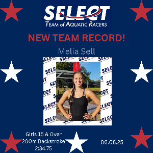 Congratulations, Melia, for setting a new Select Team record in 200m Backstroke during the 2025 long course season!