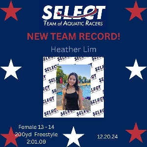 Congratulations, Heather, for setting a new Select Team record for the 200 yd Freestyle at the King Marlin Pro-Am Meet!
