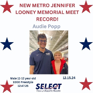 Congratulations, Audie, for setting a new meet record at the 2024 MTRO Jennifer Looney Memorial Meet for the Male 11-12 1000 yd Freestyle! Way to go!