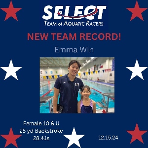 Select Swim had a great New Year’s Eve celebration at our Select Swim New Years Classic Intrasquad meet! This meet was open to all swimmers. We would like to give a shout out to Cynthia Zhao and Heather Lim who both achieved at least one "BB" time; and Audie Popp who achieved at least one "A" time. We would also like to give a shout out to Select Alum, Sebastian Knowles, for attending our intrasquad meet. He is finishing up his college swim career this spring! We would also like...