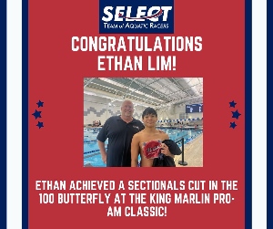 Congratulations, Ethan Lim for achieving a Sectionals Cut in the 100 yd Butterfly!