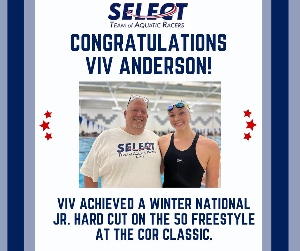 Shout out to Viv Anderson for and amazing weekend at the COR Classic! Viv achieved Winter Jr. Nationals Hard Cut this weekend in the 50 Freestyle! Way to go, Viv! Way to go, Ethan!