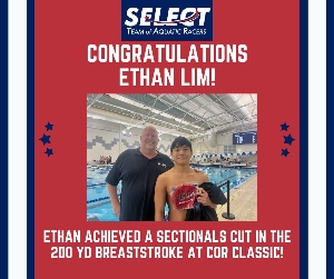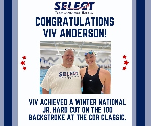 Select Swim had a great weekend at the COR Classic! This meet was open to swimmers with at least one “A” time. We would like to give a shout out to Viv Anderson, who achieved her first Winter Jr. Nationals Cut! We would also like to recognize Ethan, who achieved at least one Sectionals Cut this weekend, and Melia and Cynthia for achieving at least one “Sectionals Bonus”. We would like to recognize Ethan Lim who achieved one new ‘AAA’ time. We would like to recognize James Case and Melia...