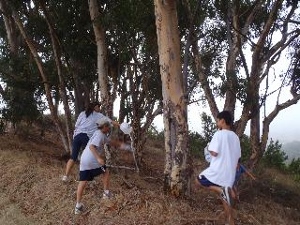 The Team Hike today turned into a great event. 30 swimmers from the Junior and Senior groups participated in the 2 hour hike. Carrying 2 gallons of water in a back pack, which by the way weighs 16 pounds making the uphill hike challenging. The water was used to water some thirsty trees at the top of the Powder Canyon Trail. The Goal Setting session was a great way to start the season.