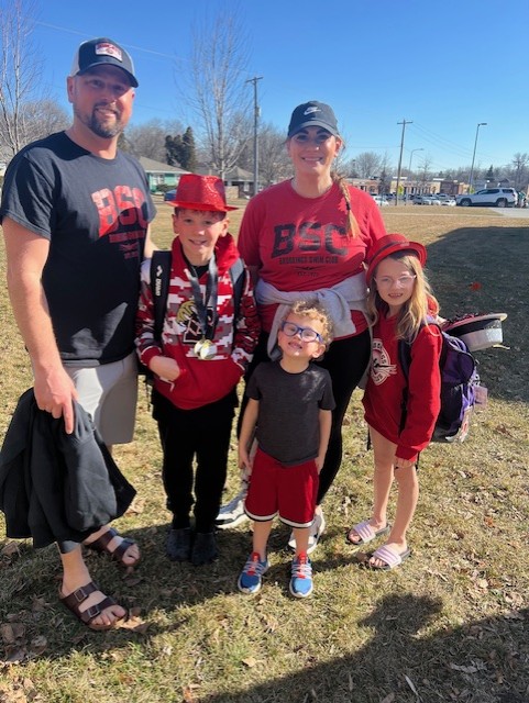 Our daughter Avery has been swimming with Brookings Swim Club since 2021. Her current favorites are backstroke and relay starts! We made Brookings our home 10 years ago. I work from home as a Senior Accounting Manager for Prairie AquaTech/Houdek here in Brookings and Brent works at Daktronics in the Transportation Factory. When we are not cheering on BSC, we love to spend time outdoors fishing and tubing, visiting family and playing with our dog Scout.