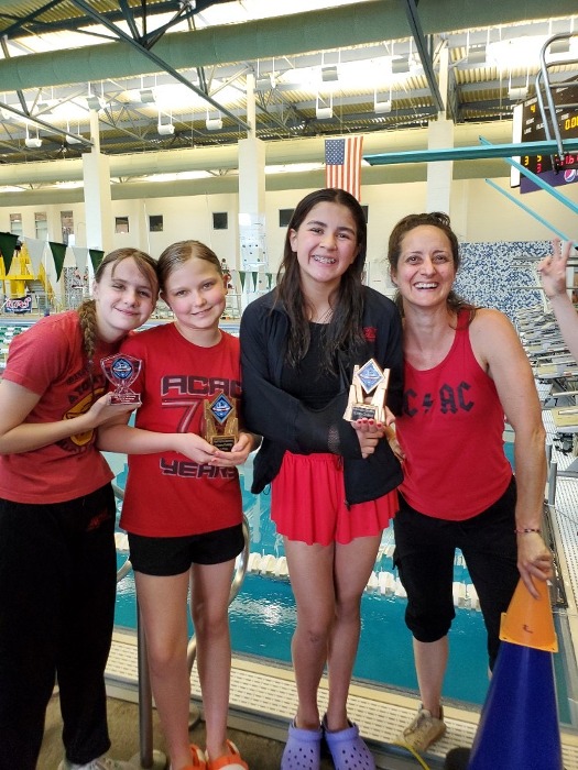 The team put forth best efforts throughout the meet and nearly everyone made a second swim at finals. ACAC focused on learning to manage energy, hydration, fuel and cooldowns through six sessions of racing. ACAC team high scorers included: Andrew Chou (15&over boys), Jessi Schaefer (13-14 girls), Dorian Volcansek (13-14 boys), Mateo Volcansek (11-12 boys), Sophie Volcansek (11-12 girls) and Hollins Grubb (10&under girls).